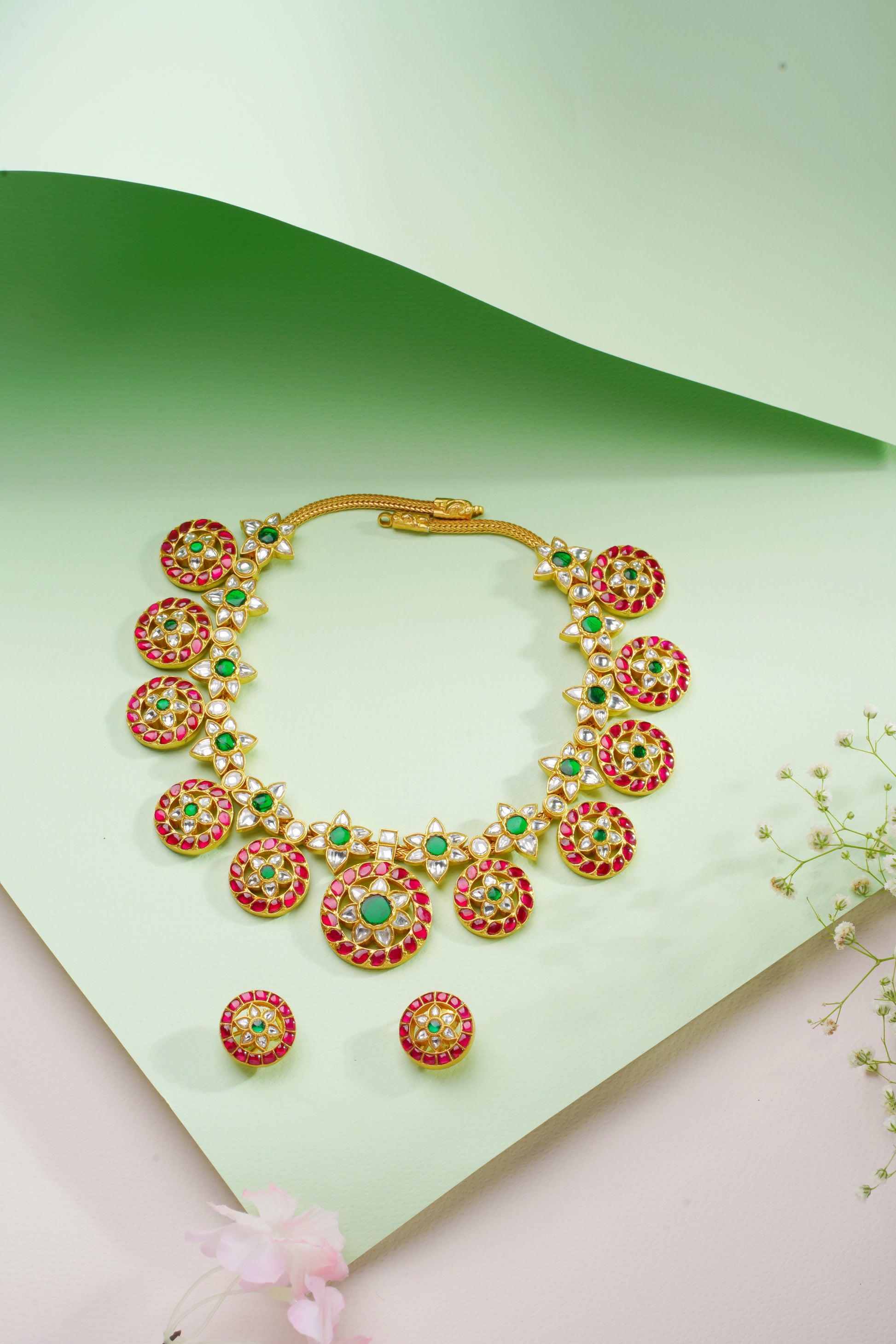 Radiant Kundan Bottu Bridal Choker with Emerald Accents
